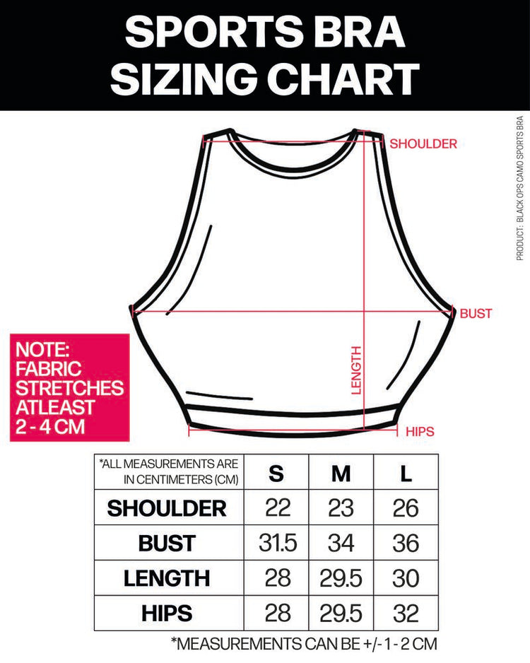 Our Black Ops Training Bra combines the most soft fabric with a super comfortable active wear fit which will flatter your body no matter what activity. The extra stretch allows you to be comfortable even when your size fluctuates. The carefully selected camo print will flatter any skin tone and body shape.