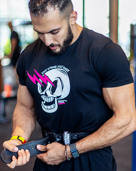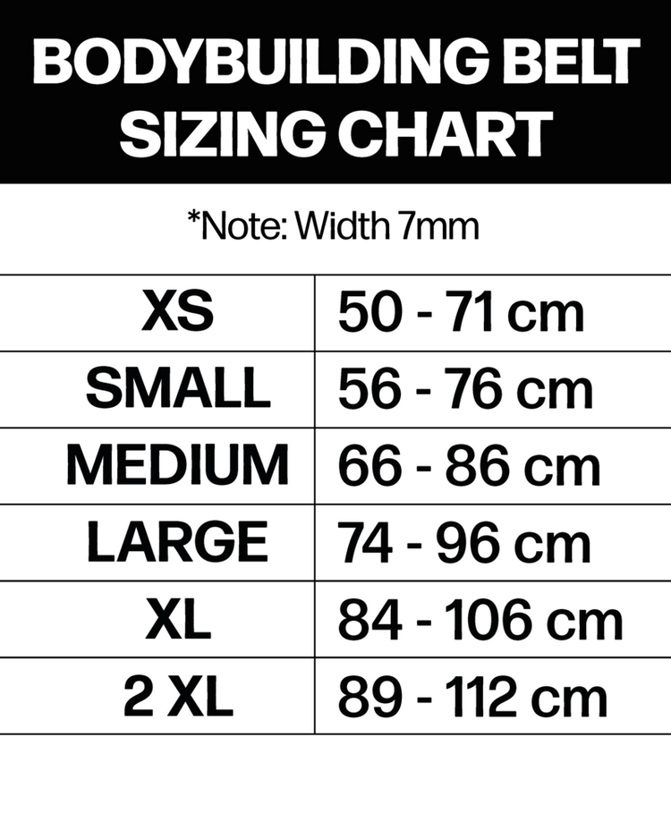 Our Body Building belt features a narrow front and wide padded back for ultimate back support and mobility. A staple for any Bodybuilder, Powerlifter, Strongman, Strongwoman or Fitness Athlete.